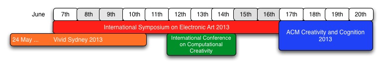 Computational creativity is the study and simulation, by computational means, of behaviour, natural and artificial, which would, if observed in humans, be deemed creative. The Fourth International Conference on Computational Creativity will be held June 12 – 14, 2013 in Sydney, Australia. For information on submitting a paper to the conference, please check the Call for Papers. You can learn more about the conference by looking at the websites for previous conferences.
