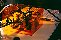 Lichtsuchende is an interactive installation, built using a society of biologically inspired, cybernetic creatures who exchange light as a source of energy and a means of communication. Visitors are invited to engage with the installation using torches to influence and interact with the phototropic robots. The embodied algorithms give rise to emergent behaviours with communicative and emotional resonance, allowing a duet between the humans and the cybernetic beings.